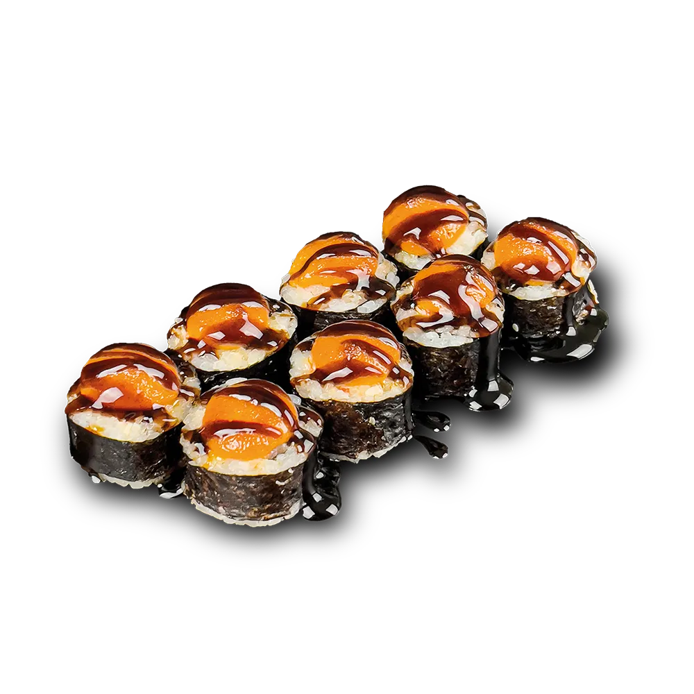 Orez, alge nori, crab mix, cremă de brânză, sos unagi, parmezan, sos backed.